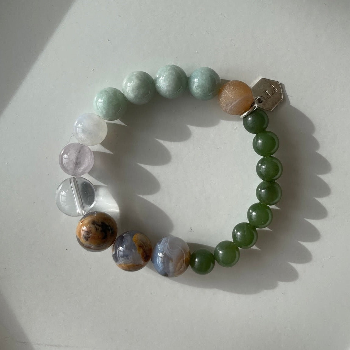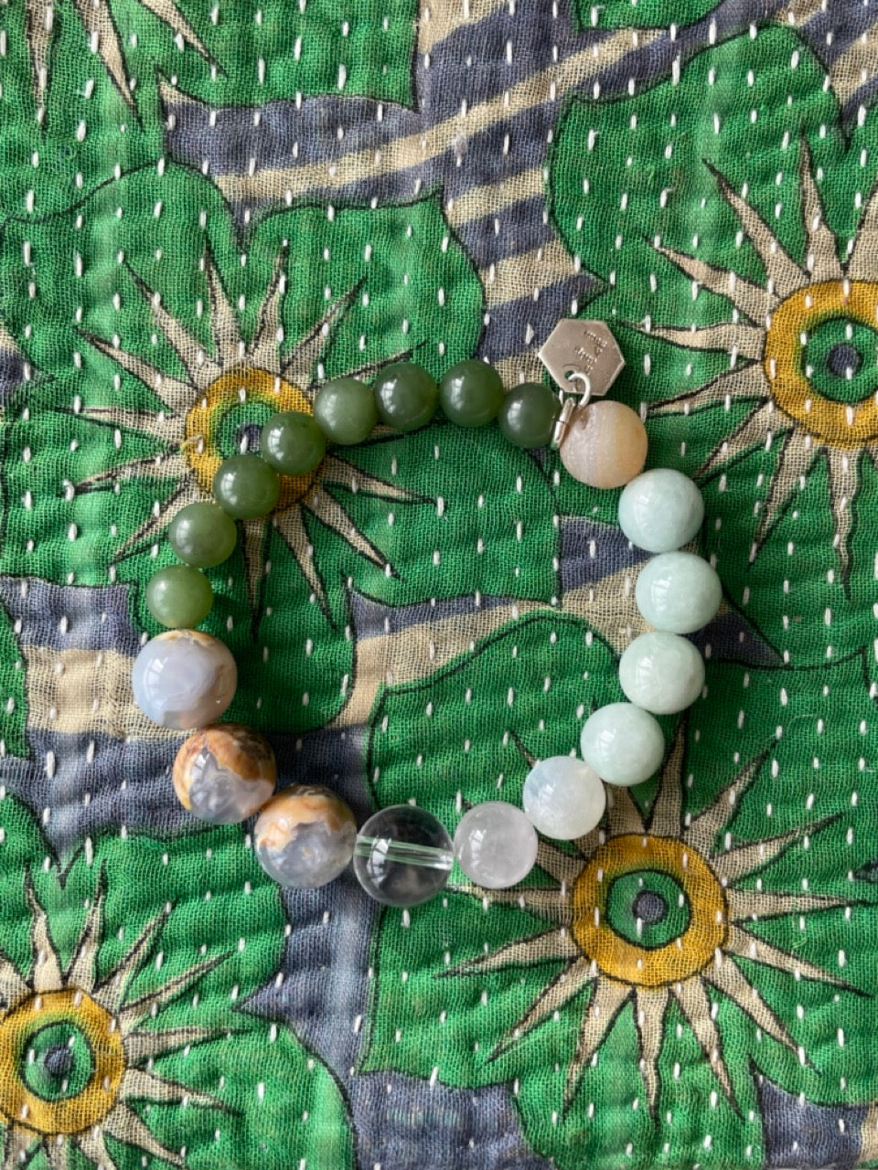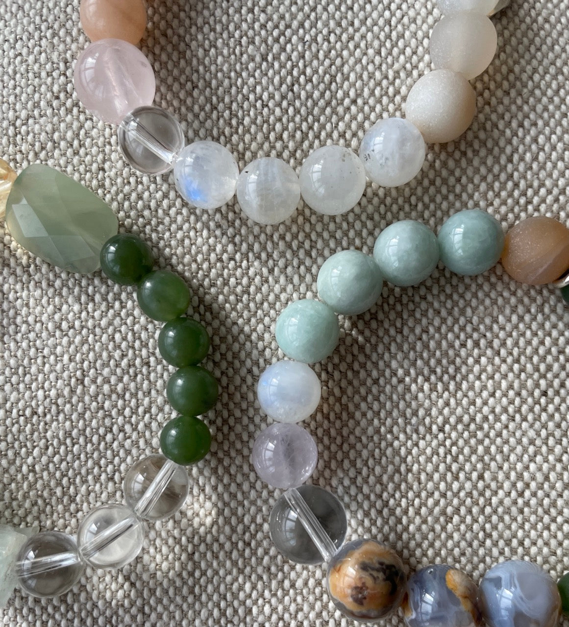 Armband mit 925/- Silber, Mondstein, Jade, Achat, Bergkristall